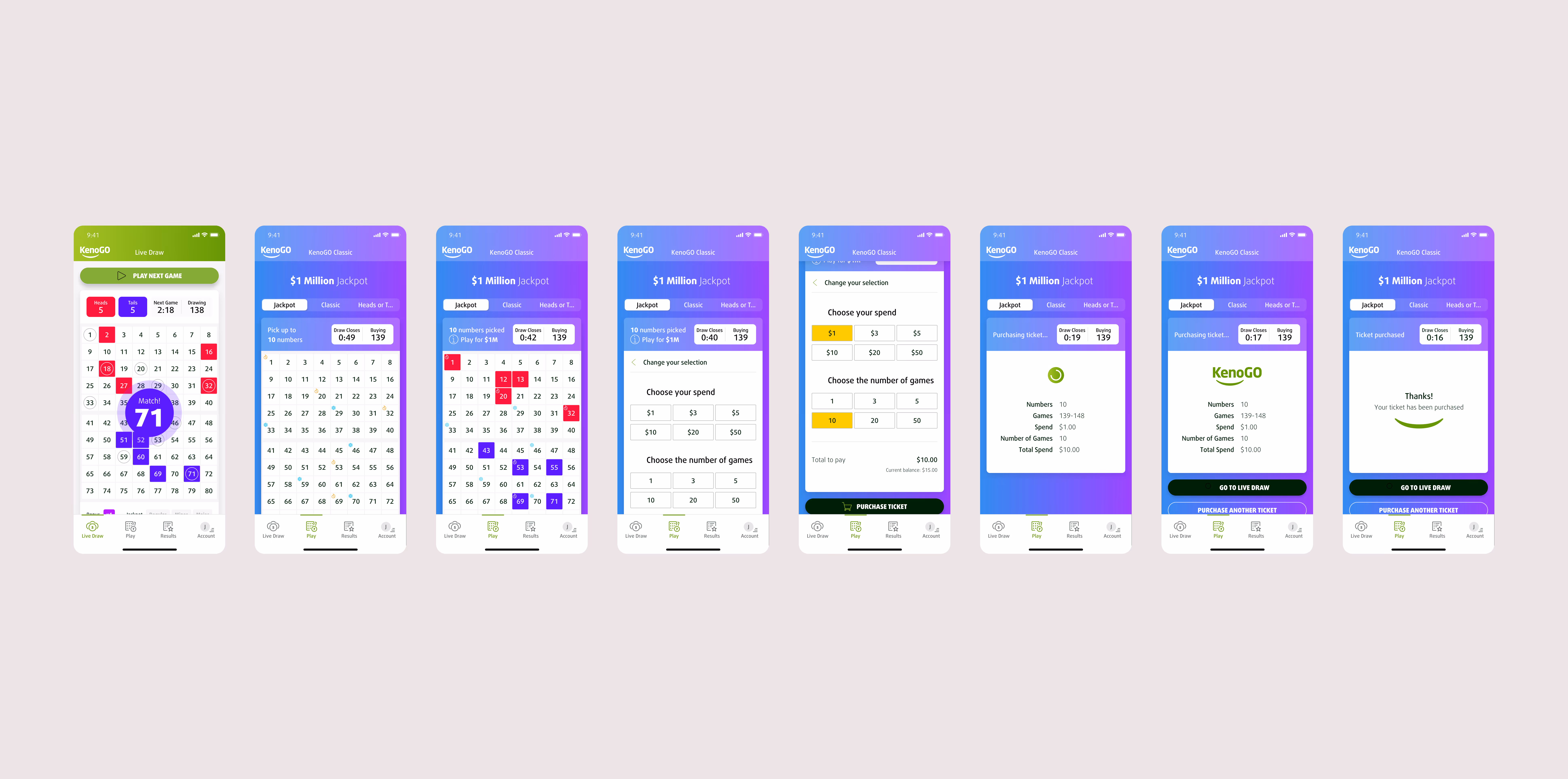 KenoGO was a greenfield product built to challenge Tabcorp's monopoly on Keno licences in Victoria and establish Lottoland's presence on the App Store and Play Store in Australia. No Keno product existed at Lottoland prior to this — the mobile app and web experience were designed simultaneously, from scratch.